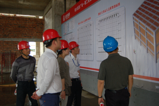 繼嘉興市建管局組織了各縣(市、區(qū))建筑行業(yè)主管部門負責人、建筑(市政)施工企業(yè)代表等對桐鄉(xiāng)旅游廣場一期工程進行現(xiàn)場觀摩后,集團內部觀摩活動也如火如荼地開展起來,集團下轄子公司、專業(yè)公司、中心、部門、各在建工程項目部先后組織人員進行現(xiàn)場觀摩。