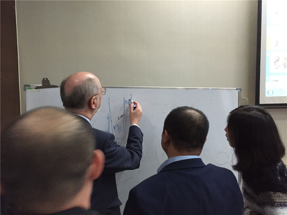 Luc .Taerwe院士一行在建設集團副總裁鄭剛、副總工程師蔡會平等陪同下參觀了企業(yè)形象展示中心,聽取了企業(yè)發(fā)展情況、技術研發(fā)工作、未來發(fā)展方向和期待合作領域等方面的情況匯報,雙方就共同關心的建筑技術發(fā)展方向、裝配式建筑技術、綠色施工技術等方面進行了交流,并重點針對混凝土裂縫控制技術進行了深入的研討。