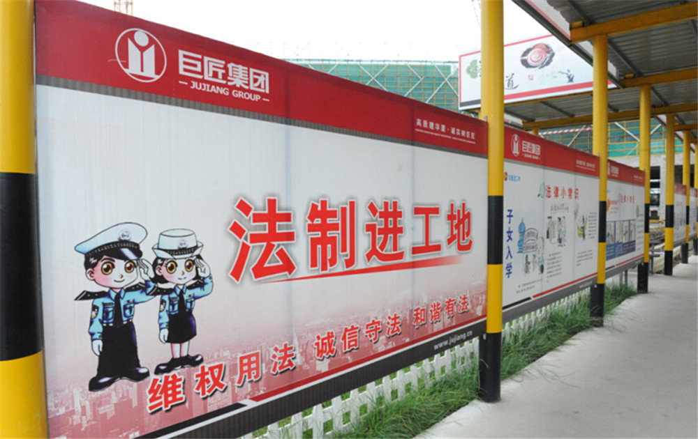 這幾年,集團注重工程形象建設、創建平安工地,著力打造法治示范工地,在施工現場以圖文并茂的法治宣傳欄、消防安全墻、法治文化長廊,安全顯示屏,建筑民工維權告示牌、法治茶館等平臺加強法律宣傳,增強農民工的法治意識。在普法過程中,集團也做到“四個結合”,法制宣傳教育與安全生產相結合、與職工權益保護相結合、與經營管理相結合、與綜合治理相結合,拓展了“法律進企業”工作領域,豐富了“法律進工地”的內涵,為打造“法治企業”、“和諧工地”奠定了基礎。企業成為桐鄉“法律十進”的特色示范點。