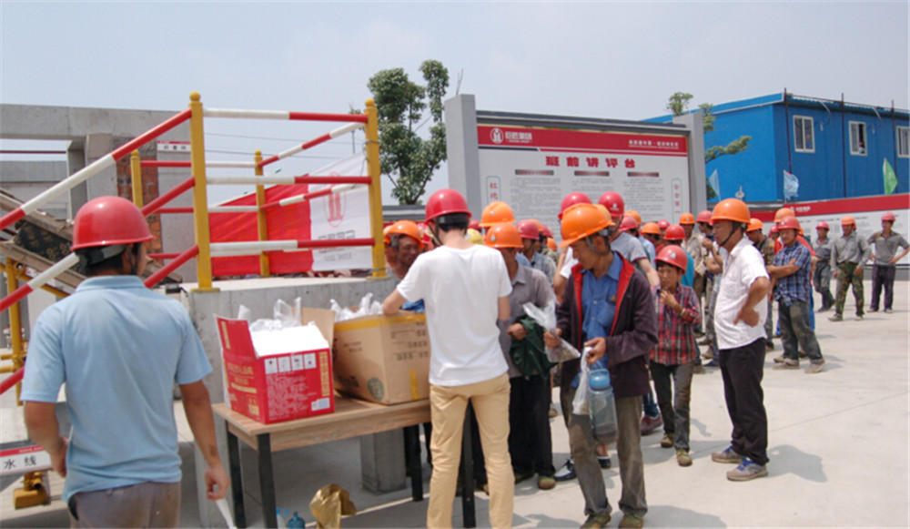 在安全教育的同時,項目部也對即迎來的高溫季節(jié)施工進行了全面交底,要求施工人員必須遵守相關(guān)安全、質(zhì)量技術(shù)操作規(guī)程,增強自我保護意識,配合項目部做好各項防暑降溫措施,確保順利度過高溫季節(jié)。此外,項目部不忘對一線工人的關(guān)愛,給施工人員發(fā)放了愛心粽子,讓來自五湖四海的農(nóng)民工朋友感受“端午節(jié)”的濃郁氛圍和他鄉(xiāng)的關(guān)愛。