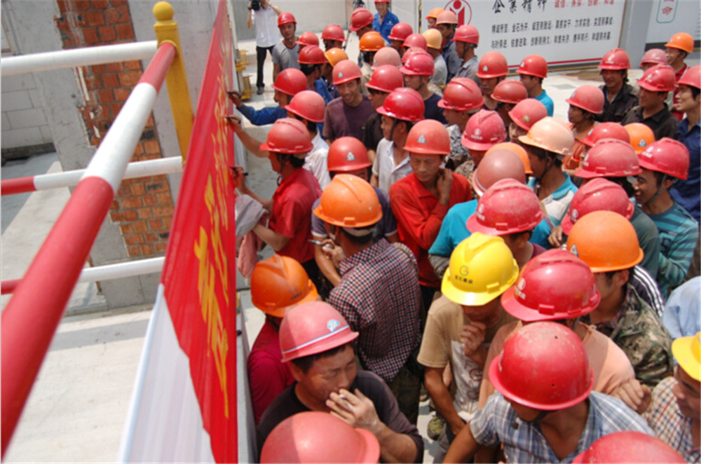 隨后,項目部又對所有施工人員進行了安全宣教,從施工人員的切身利益出發(fā),對工人進行安全教育,對施工人員的安全意識及安全生產(chǎn)的意義進行強調(diào)。提出了“安全從我做起”的口號,并發(fā)起了倡議簽名活動,大家在安全橫幅上簽名表決心。